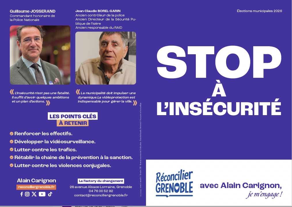 Pourtant, comme le souligne Guillaume Josserand, Commandant honoraire de la Police Nationale : « L’insécurité n’est pas une fatalité. Il suffit d’avoir quelques ambitions et un plan d’actions. » C’est précisément ce que propose Alain Carignon : un changement de méthode, de moyens et de volonté politique.