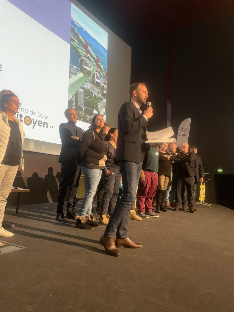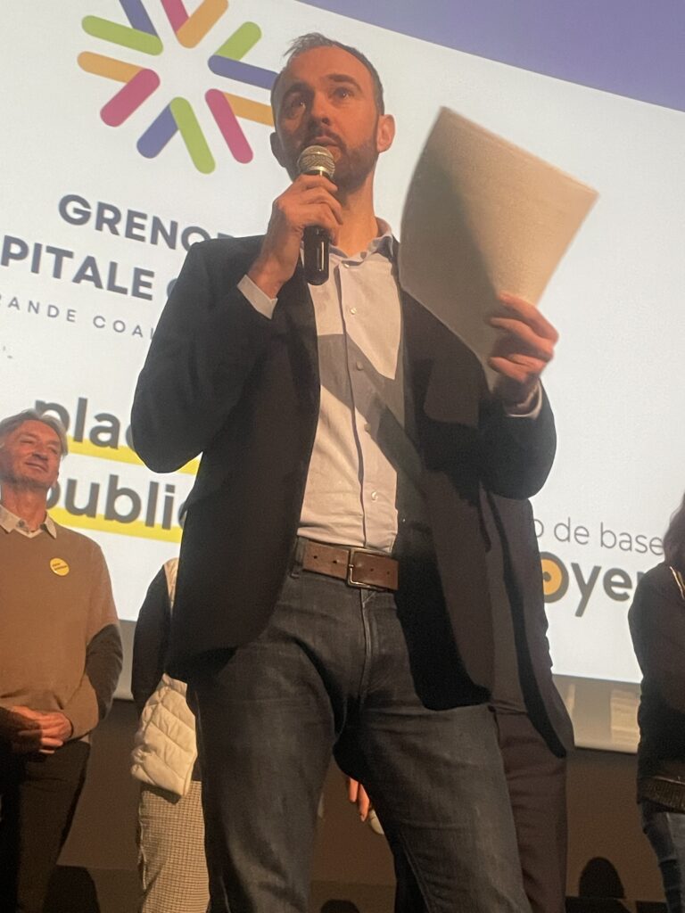 Tous et toutes au soin de l’arrivée conjointe de Romain Gentil et de Raphaël Glucksmann, les deux têtes d’affiche de la soirée, sous les applaudissements nourris de toute la salle et d’un parterre d’élus et de personnalités locales. Parmi ces personnalités, on pouvait voir entre autres Christophe Ferrari, président de Grenoble Alpes Métropole, Fanny Lacroix, maire de Châtel-en-Trièves, Geneviève Fioraso, ancienne ministre, Michel Destot, ancien maire de Grenoble, Barbara Schuman, élue municipale et métropolitaine, Thomas Pellerin-Carlin, Eurodéputé Place Publique ou encore Vincent Radziejewski, d’Équinoxe.